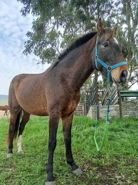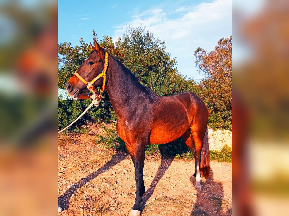 This sweet PRE mix mare is looking for the person of her heart. She has a kind-hearted character, is very people-oriented and curious. She is currently 4.5 years old and approx. 1.49 m tall. She has already been ridden in all 3 basic gaits and is a pleasure to ride, both in the arena and cross-country, but is only ridden occasionally, so she is not yet well trained and is looking for someone at her side who would like to train her further. In the future we can imagine her in dressage, working equitation or simply as a leisure partner. She already knows dogs, sheep and cars. She comes from a private home and was taken out of bad conditions a year ago. Now she is allowed to live in the meadow in the herd, where she really blossoms. For this reason, she is also being offered at a reasonable price, as the most important thing for her is that she gets a great home with someone who appreciates her and enjoys training her and forming a team with her. Location: Andalusia, Spain, a meeting and transport can be organized without any problems