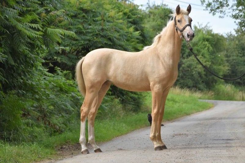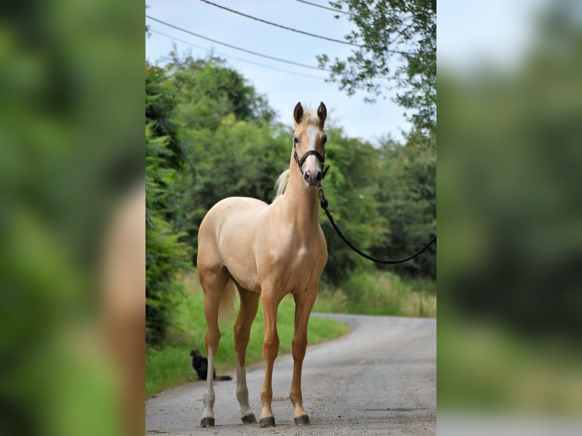 This sweet, inquisitive, and social mare is looking for the right match. Age: 5 years Height: 1.58 m (not officially measured) Color: Palomino PSSM1 negative Includes registration papers Sire: Wonderful x Dam: Atenta VLR Owned by me since foalhood. No past traumas. Halter trained, but not yet ridden under saddle. Bitless bridled. Under saddle, she has been somewhat reserved at first, rather than overly forward. This may be due to needing to build her fitness, but I also get the impression that she doesn’t particularly enjoy work in the arena. For this reason, I believe she would be happier with a rider who enjoys a more energetic, dressage-oriented training style, as she has a lot of energy and enthusiasm. She can sometimes develop subtle tension when ridden. If this isn’t recognized and released in time, it can result in strong bucking as she reaches her limit. However, this behavior usually subsides quickly afterward. She does not tend to bolt or spook in the same spot. Therefore, she is not suitable for a beginner rider. I expect this to improve as she continues her training, as she is generally very calm and sensible. I think she would be best suited for a confident recreational rider who, besides riding in the arena, also enjoys other activities such as trail riding, liberty dressage, long-lining, and liberty work. I believe she would particularly thrive in liberty work. Ground manners are very good. She is well traffic-sound and regularly goes for walks outside. She doesn’t cling to other horses during walks and quickly seeks reassurance from her handler if she finds something a bit scary. Respectful, human-oriented, and well-mannered. Responds well to body language and voice commands. She is kept here in a small herd, outdoors 24/7 with a shelter, limited turnout (about 4-5 hours daily), and always has access to hay from slow feeders. She will only be sold if she finds a better situation than here, meaning only to the right match. A Metavital scan revealed by chance that she has Lyme disease. According to the scan, it no longer plays an active role. Blood tests confirmed the presence of antibodies against the bacteria. She is currently on a herbal supplement and shows no other symptoms. Last September, she had an allergic reaction, resulting in hives (urticaria). I conducted an allergy test, but no clear cause was identified (available for review). She was also affected by hives for a few weeks last September, which then disappeared on their own. It appears to be a seasonal allergy related to something on the property. The last photo shows her sire; the second-to-last photo shows her dam. If desired, her brand-new, custom-fit Deuber saddle (El Campo, in Havana/cognac, S2) along with a matching bridle (for a bit) and a cognac bitless bridle (Edix) can be included in the sale.