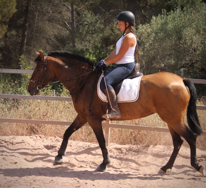 Diese barocke Schönheit bringt ganz viel Qualität der iberischen Rasse mit: nicht nur durch ihr barockes Gebäude ist sie ein echter Hingucker, auch ihre ausdrucksstarken Bewegungen lassen sie auf dem Platz glänzen! Auch genetisch hat INDIA einiges zu bieten (ihr Vater kommt aus dem berühmten Gestüt Alberto Boya!), somit könnte sie auch für die Zucht interessant sein. INDIA konnte eine sorgenfreie Aufzucht in der Herde im Freuen genießen. Sie wird nun von mir schonend etwas auf Wassertrense angeritten und zeigt sich im Training kooperativ und fleißig. Aktuell geht sie bereits gut in den drei GGA unter dem Reiter. Gerne könnte sie auch zur weiteren Ausbildung noch etwas hier bleiben. Sie besitzt volle Papiere des spanischen Züchtervereins ANCCE. Standort Spanien.