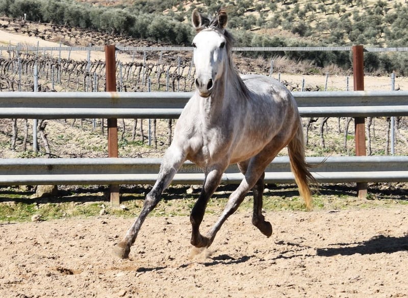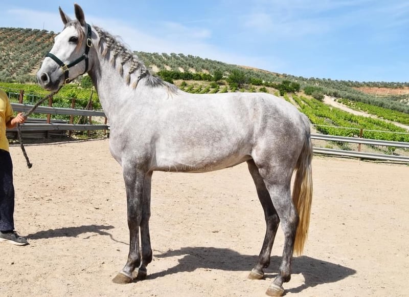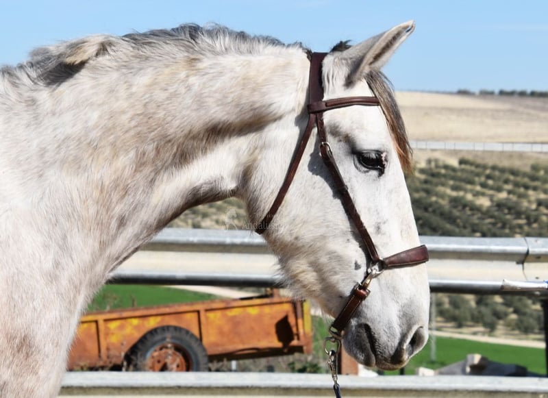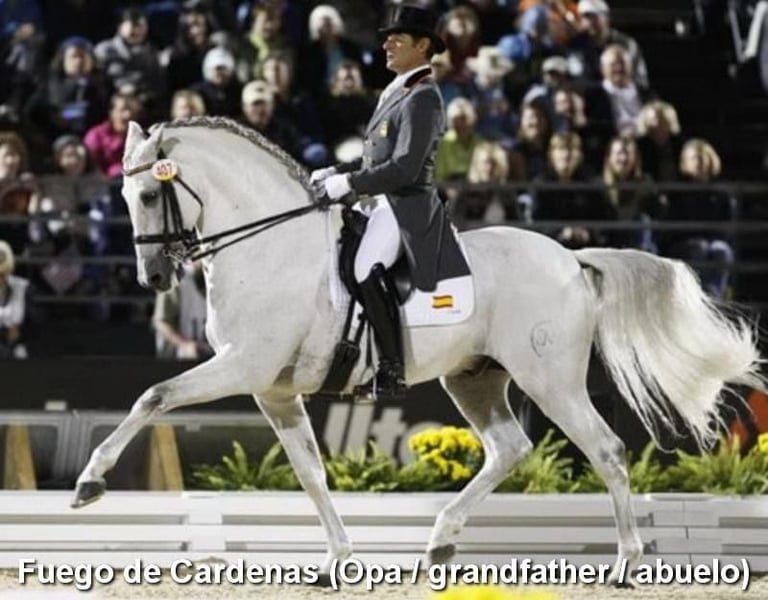 bon caractère, brut, a été débourré récemment, grand, bonnes allures et origines, origines : Cardenas, Yeguada Militar, a plusieurs ancêtres qualifiés www.elegante-andalusier.com