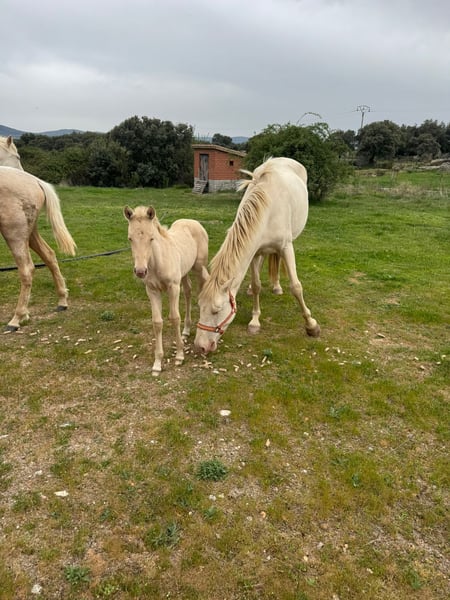 DILUTED (6 HEADS) For sale is a high-quality genetic lot consisting of 3 broodmares, 2 fillies, and 1 foal. Ideal for breeders seeking color, height, and selected bloodlines. Lot details: 1. FENDI DE LA SIERRA mare: Perlina (formerly Perla), 5 years old. Genetics: ggEeAACrCr. Height: 1.58 m. Suitable for breeding. Delivered pregnant with a filly (Perlina or Perl Bay). 2. RAPUNZEL AR mare: Splash with double dilution. Genetics: GgAaEECrCrNN. Height: 1.62 m. Suitable for breeding. Possibly pregnant with an Appaloosa stallion for late 2026. 3. Third mare: PRE (Andalusian) breed, suitable for breeding, with diluted coat colors (Perlina/Cremello). 4. 2 fillies and 1 foal: With excellent bloodlines and great potential for competition or breeding. Key points: ✅ Proven genetics (eeCrCr). ✅ Suitable as broodmares. ✅ Exclusive coat colors: Perlina, Cremello, Perl Bay. ✅ Competitive height and good temperament. Price for the lot: €25,000 Option to purchase separately (inquire). 📍 For more information, photos, and complete pedigrees, contact via WhatsApp: +34 628 234 594