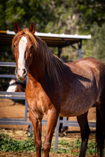 Fleur - our exceptional 4-year-old PRE mare in the rare Rubiacano color - is a true gem for lovers of noble horses. She is expecting her first foal in March/April 2025, which is by an impressive Isabello stallion with a Cartujano bloodline. The sire impresses with his original baroque type and strong mane with a fine head. Fleur herself impresses with her large-framed, stable build, strong pasterns and a wonderfully shaped neck. Her charming blaze and the two white socks on her hind legs also give her an unmistakable look. With her enchanting nature and her people-oriented nature, Fleur is a true lady of the heart who enjoys closeness and contact. Once the foal has been weaned, she can be carefully introduced to training as a riding horse - she has the best prerequisites. An exceptional horse that impresses with its elegance, character and breeding potential!