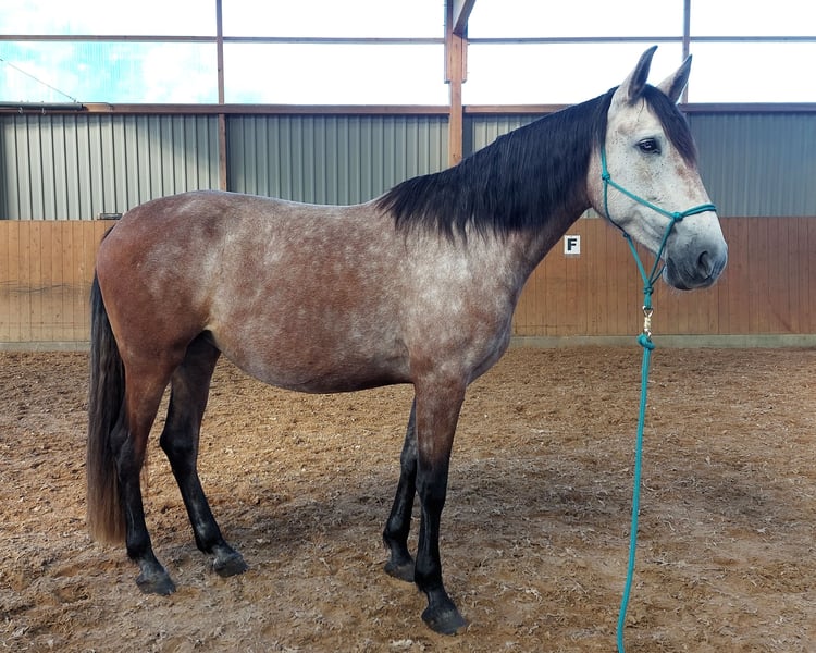 I am reluctantly selling my dear, sensitive PRE mare to a good home due to personal circumstances. She has ANCCE papers and a recent veterinary examination with various findings from 2/25. She is vaccinated against influenza, herpes, and tetanus. She is barefoot and has no issues with hoof trimming. Due to her excellent pedigree, she is also suitable as a broodmare. In handling, she is very polite towards humans and well-socialized in a herd. She is eager to learn, intelligent, and approaches everything new with curiosity. However, she needs time to get to know her person. She is still at the beginning of her potential and requires an experienced rider with a gentle touch.
