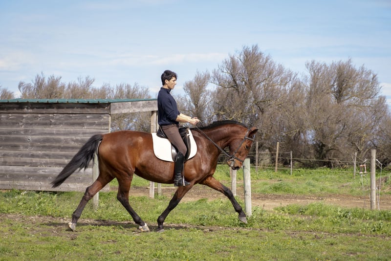 Damisela XIX par Aimar III et Damisela de Lys par Marciano VIII, jument PRE pp de 7 ans. Jument avec beaucoup de chic et de la taille, toise 1m68 Très bons aplombs, très bon dos m, jument porteuse Elle a pouliné l'an passé, très bonne mère, sa pouliche est visible sur place Jument très gentille, montée aux trois allures, elle a été débourrée avant sa mise à la reproduction puis remise en route après le sevrage de sa pouliche. De nouveau au travail, elle se montre très volontaire et très facile, à finir de former. Elle sort seule en extérieur sans problème, jument en avant, pas du tout sur l'œil. Elle serait idéale pour du dressage classique (grosse locomotion).