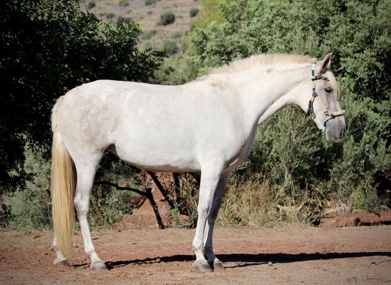BURLONA, bei uns BELLA genannt, ist eine Barockstute wie aus dem Bildband! Ein kompaktes, ausgewogenes Gebäude, ein gutes Fundament und natürlich ihr imposanter Barockhals und ihr ausdrucksstarkes Gesicht machen sie zu einem echten Modell für die PRE als Rasse. Wie in Spanien bei den Stuten, die direkt vom Züchter kommen üblich, hat sie Mähne und Schweifansatz gestutzt. Sie ist aber keine Exzemerin und das Langhaar wächst bereits wieder nach. BELLA überzeugt zudem durch einen besonders lieben und warmherzigen Charakter. Nachdem sie nun einige Jahre in der Herde bei ihrem Züchter stand, ist sie bei mir wieder im Aufbautraining und zeigt sich geschickt, fleißig und lernwillig. Sie ist in den GGA geritten und lernt gerade Schulterherein und Schenkelweichen. Wir waren auch bereits mit ihr im Gelände, wo sie sehr sicher ist und besten mit Autos, Traktoren, Hunden etc. vertraut. Sie läuft sehr sicher und zuverlässig unter dem Reiter und gibt ein sicheres und entspanntes Reitgefühl. Keine Schimmelmelanome. Volle Papiere der ANCCE. Standort Spanien.