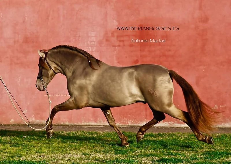Jak najlepiej opisać tę wymarzoną klacz? Trujillana („Illana”) jest bardzo inteligentna, niezwykle przyjacielska, chętna do współpracy, bardzo zrównoważona i obdarzona delikatnym charakterem. Ta piękna klacz wyrosła u nas w Niemczech i otrzymała wszystko, co jest niezbędne dla dobrej hodowli koni. Mieszka w mojej mieszanej grupie klaczy 24/7, na świeżym powietrzu, w otwartym boksie z dużą ilością ruchu i swobody. Nasze konie są regularnie odrobaczane, szczepione i karmione zgodnie z potrzebami, wysokiej jakości sianem oraz najlepszymi dodatkami paszowymi. Dla nas konie to członkowie rodziny, którym poświęcamy dużą uwagę i szacunek. Illana jest ciekawa świata, inteligentna i posiada piękne ruchy. Z dużym zaangażowaniem pracuje z człowiekiem, jest zawsze czujna i skoncentrowana. Ze względu na jej delikatny charakter i predyspozycje, wyobrażam ją sobie doskonale w dyscyplinach takich jak Working Equitation, czy Zirkuslektionen, a także jako wartościowego partnera rekreacyjnego. Ponadto jest absolutnie niezawodną i prostą w obsłudze klaczą hodowlaną. To bardzo kochająca i troskliwa matka, która rodzi piękne, wybitne pod względem charakteru źrebięta (zdjęcia 4-8). Jest w pełni brązowa, bez oznakowania, i nosi rzadki gen Pearl, który odziedziczyła po ojcu, podwójnym ogierze Pearl, Albero LXXXVI (ostatnie 2 zdjęcia). Jest wpisana do księgi hodowlanej ANCCE, posiada pełną dokumentację i jest oczywiście zarejestrowana. Ze względu na jej wyjątkowy charakter, pochodzenie oraz niezwykłą genetykę koloru, stanowi idealną okazję dla tych, którzy szukają czegoś wyjątkowego. Ta doskonała klacz z pewnością spełni oczekiwania najbardziej wymagających. Jeśli interesuje Cię Trujillana, chętnie skontaktuj się z nami i poznaj tę niezwykłą klacz osobiście. Znajdziesz nas także na Facebooku pod adresem https://www.facebook.com/YeguadaElHalcon/