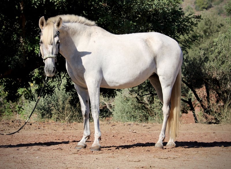 BURLONA, u nas nazywana BELLA, to klacz barokowa jak z katalogu! Zgrabna, proporcjonalna budowa, solidne fundamenty oraz jej imponująca barokowa szyja i wyrazista twarz czynią z niej prawdziwy wzór dla rasy PRE. Jak to zwykle w Hiszpanii u klaczy od bezpośredniego hodowcy, ma podcięte grzywę i ogon. Nie jest jednak egzemplarzem o długiej sierści, która już odrasta. BELLA zachwyca także wyjątkowo przyjaznym i ciepłym charakterem. Po kilku latach spędzonych w stadzie u swojego hodowcy, obecnie jest w moim treningu wznoszącym i pokazuje się jako sprytna, pracowita i chętna do nauki. Jeździliśmy na niej w terenie, gdzie jest bardzo pewna siebie i świetnie radzi sobie z samochodami, traktorami, psami itp. Jeździ bardzo pewnie i niezawodnie pod jeźdźcem, zapewniając spokojne i relaksujące wrażenie podczas jazdy. Brak melanomów na białych plamach. Pełna dokumentacja ANCCE. Lokalizacja: Hiszpania.