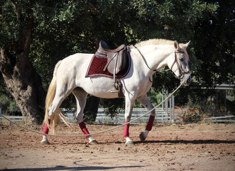 BURLONA, known as BELLA with us, is a baroque mare straight out of a picture book! A compact, balanced build, a good foundation, and of course her impressive baroque neck and expressive face make her a true model for the PRE breed. As is customary in Spain for mares coming directly from the breeder, her mane and tail have been trimmed. However, she is not an Exzemer and her long hair is already growing back. BELLA also impresses with a particularly sweet and warm-hearted character. After spending a few years in the herd with her breeder, she is now back in training with me and shows herself to be skillful, diligent, and eager to learn. She is ridden in the basic gaits and is currently learning shoulder-in and leg-yielding. We have also taken her out into the field, where she is very confident and well-acquainted with cars, tractors, dogs, etc. She moves very safely and reliably under the rider and provides a secure and relaxed riding experience. No melanoma. Full papers from ANCCE. Location: Spain.