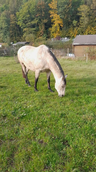 For Sale: PRE Mare – Buckskin, Born in 2016 This elegant PRE mare impresses with her attractive appearance and pleasant temperament. Standing at 16.3 hh, she is the perfect companion for leisure riding. She is friendly, reliable, and versatile, making her suitable for extended trail rides, walks, or relaxed hours in the countryside – she is always a delightful partner. Suena is a 9-year-old, licensed purebred PRE mare. She is also registered as buckskin, and her color genetics can produce many beautiful foal colors if bred (see photos). She has been ridden and driven. She has successfully participated in the Easter Riders for the third year in a row. One of the photos shows her as a foal, and another features her grandsire, Revoltoso XXIX. If you are interested or have further questions, I am happy to assist you. Please contact me to learn more about this lovely horse!