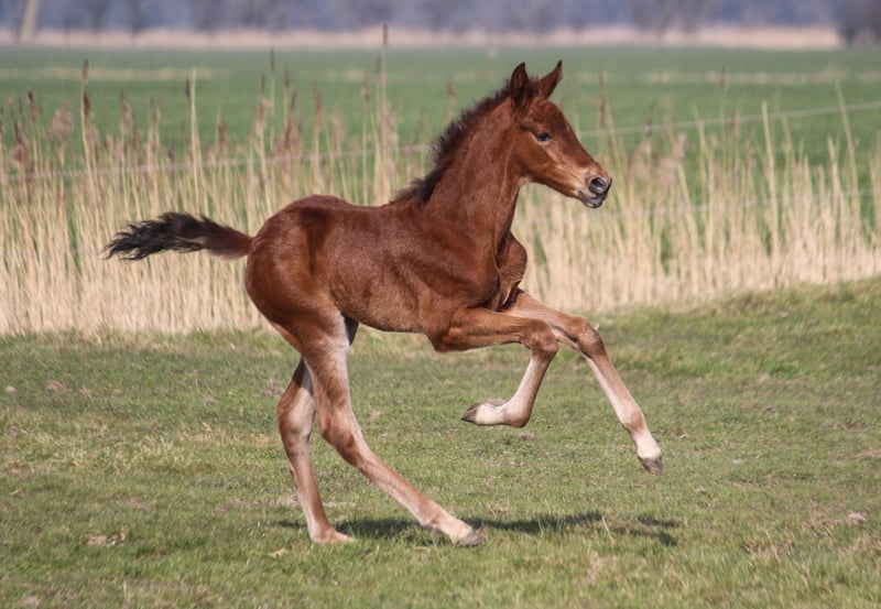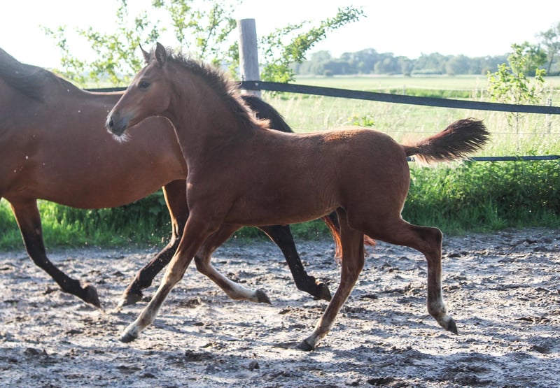 Die elegante Baylena kommt aus unserem auf PRE Sportpferde spezialisiertem Gestüt. Ihre Mutter vererbt eine starke Hinterhand, viel Schwung und Schulterfreiheit. Trabverstärkungen sind die Paradedisziplin dieser Linie. Baylena hat einen sehr vielversprechenden, harmonischen Typ mit guter Rückenlinie und Halsaufsatz. Vom Charakter her sind alle unsere Pferde sehr freundlich im Umgang und sehr rittig unter dem Sattel. Bei Interesse an Baylena, kontaktieren Sie uns gerne.