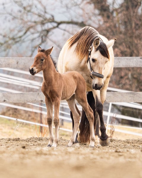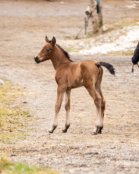 PRE Stutfohlen „Amari“ – braun mit Pearl-Gen Zum Verkauf steht unser wunderschönes PRE Stutfohlen Amari, geboren am 18.02.2026. Amari ist ein braunes Stutfohlen mit Pearl-Gen und überzeugt bereits jetzt mit ihrem harmonischen, korrekten Gebäude und einer sehr interessanten Abstammung. Charakterlich zeigt sie sich ruhig, ausgeglichen und eher zurückhaltend, dabei aber – ganz typisch für ein Fohlen – auch neugierig, aufmerksam und aufgeweckt. Sie wächst liebevoll und familiär im Herdeverband auf und kennt den täglichen Umgang mit Menschen. Väterlicherseits stammt sie von dem bekannten PRE-Zuchthengst Darko PA aus Spanien ab. Ihre Mutter entstammt einer alten barocken Linie, was Amari zusätzlich zu einem besonders interessanten Nachwuchspferd für Freizeit, Dressur oder Zucht macht. Unsere Pferde wachsen am Berg unter sehr guten natürlichen Bedingungen auf. Die Bewegung im Gelände bietet ideale Voraussetzungen für eine gesunde Entwicklung von Sehnen und Bändern sowie für eine stabile und verantwortungsvolle Aufzucht. Amari kann jederzeit nach Absprache besucht werden und darf ab Herbst 2026 in ihr neues, liebevolles Zuhause umziehen. Bei ernsthaftem Interesse freuen wir uns über eine Nachricht.