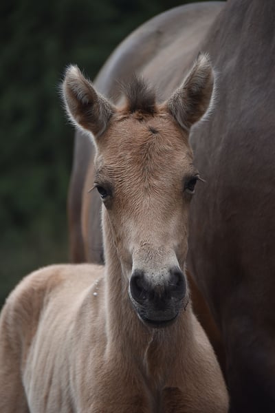 Buckskin PRE filly by Diva Madeira NJ × Mar Wonderful Diva herself is by Sevillano De Mile out of Descerada S. She became breed champion at CCE 2023 with the best movements in her section ♥️ Her sire, Sevillano: a recommended young stallion, out of two calificado parents. He was consecutively twice reserve champion in functionality at SICAB and also won the bronze medal twice in morphology at SICAB. Her dam, Descerada S: 2012 – Best movements and reserve champion in Bristol (UK) 2013 – Gold medal in Massenhoven (Belgium) 2015 – Absolute champion (the very first mare) in functionality 2016 – Champion for best movements and reserve champion in Avenches (Switzerland) 2018 – Best mare movements at the Central European Championship in Massenhoven (Belgium) Mar Wonderful is our perlino stallion and passes on powerful movement as well as a straightforward and endearing character to his foals. She is a straightforward, affectionate, and curious filly. All paperwork is in order: ANCCE documents, carta, and genetic color test. This filly is looking for her human partner 🥹🐴