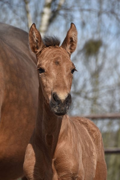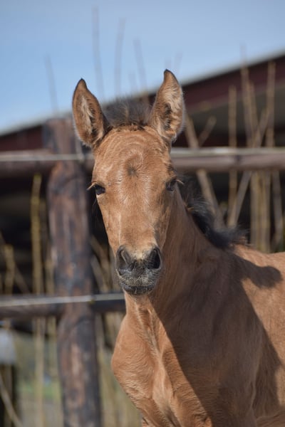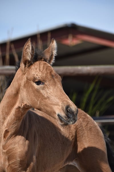 Luminosa ist eine Buckskin PRE-Stute, geboren am 4. April 2025, aus Herrerilla Cen und von Mar Wonderful. Ihre Mutter wurde von der bekannten Yeguada Centurión gezüchtet, Tochter des berühmten Delegado Mac, mit überwiegend Cárdenas-Blutlinien. Ihr Vater, unser perlino Hengst Mar Wonderful, hat sich bereits als erfolgreicher Züchter bewährt und uns mutige Fohlen mit schöner Bewegung geschenkt. Luminosa liebt den Kontakt zu Menschen und lässt sich nicht leicht beeindrucken. Sie hat all die Qualitäten, um das perfekte Familienpferd zu werden, sei es für Dressur, Freizeitreiten oder einfach als wunderbare Begleiterin. Sie wird mit vollständiger ANCCE-Dokumentation geliefert. Wir können auch TRACES-Dokumente arrangieren und den Transport organisieren, falls erforderlich. Luminosa ist in einer Herde auf der Weide aufgewachsen, wurde regelmäßig entwurmt und hat hochwertiges Futter erhalten.