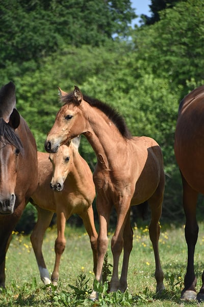 Luminosa is a buckskin PRE filly born on April 4, 2025, out of Herrerilla Cen and by Mar Wonderful. Her dam was bred by the well-known Yeguada Centurión, daugther from none other than the famous Delegado Mac, with predominantly Cárdenas bloodlines. Her sire, our perlino stallion Mar Wonderful, has already proven himself as a successful producer, giving us brave foals with beautiful movement. Luminosa loves human contact and is not easily impressed. She has all the qualities to become the perfect family horse, whether for dressage, leisure riding, or simply as a wonderful companion. She will come with full ANCCE documentation. We can also arrange TRACES documents and organize transport if needed. Luminosa has grown up in a herd on pasture, has been regularly dewormed, and has received high-quality feed.