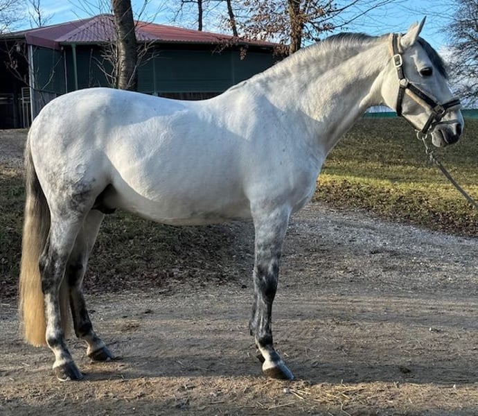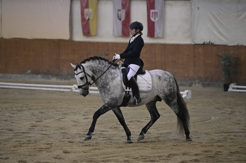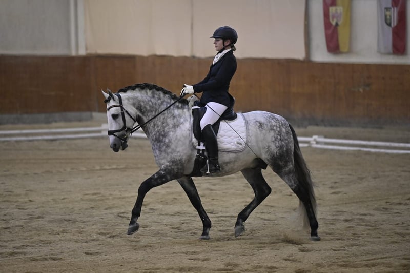 Verkaufe PRE Hengst – Apfelschimmel, Geburtsjahr 2016 Zum Verkauf steht ein eleganter PRE Hengst, geboren im Jahr 2016. Mit seinem beeindruckenden Apfelschimmel-Fell zieht er alle Blicke auf sich. Er hat ein Stockmaß von 161 cm und ist ideal für den Dressursport geeignet. Der Hengst ist bis Grand Prix gut ausgebildet, ein absolutes Verlasspferd und liebevoller Partner.Am Turnier von A-S** siegreich und platziert. Er ist auch für Amateure und Turniereinsteiger geeignet. Seine sanfte und verschmuste Art machen ihn zum Traumprinz! Keine Hengstmanieren,weder im Stall noch am Turnier,kann problemlos neben Stuten geritten werden. Bei Interesse oder weiteren Fragen stehe ich Ihnen gerne zur Verfügung. Besichtigung und Proberitte nach Vereinbarung möglich.