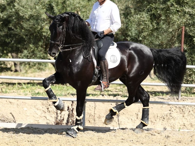 If you are looking for a black stallion, ridden at San Jorge level, with size, beauty and good movements, this stallion son of Trovador de Valdeolivas, with a height of 177 cm, may be a good choice for you. In black capes there are very few stallions with this elegance in the neck and face, characteristics that their products inherit. Coverage fee: €1,200 + Veterinarian and Shipping expenses.