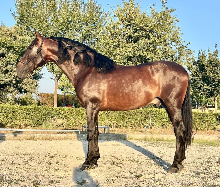 ALDEANO: This baroque stallion impresses not only with his striking appearance but also with his talent and willingness to perform in dressage. He is a true eye-catcher and has everything an ambitious rider could wish for. ALDEANO has received classical training and competes at St. George level - in addition, he masters the Grand Prix movements Piaffe & Passage! If you are looking for a horse that makes a good impression both in the arena and at competitions, then this PRE stallion could be the perfect partner for you. Location: Spain - transport can be organized worldwide For further information, please contact us via call or WhatsApp.