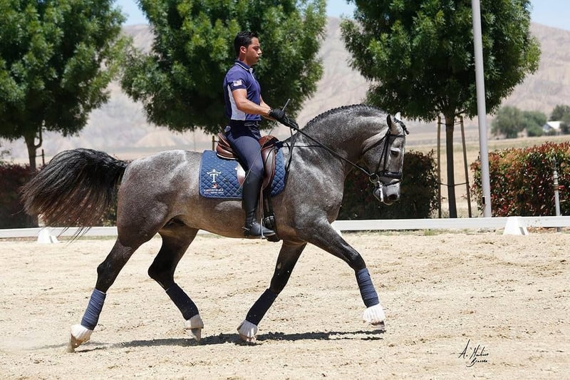 Trainero de Trujillo exemplifies the pinnacle of the PRE spectrum, hailing from Miguel Bohorquez’s renowned breeding program. Linebred on the influential Albero II, a cornerstone of the Spanish Olympic team, he also carries the prestigious bloodlines of Ganador VIII and Leviton, cementing his elite genetic legacy. With an exceptional genetic index score of 116.14, Trainero stands as a paragon of the Pura Raza Española (PRE) breed. This 17H (1.73m) stallion is a proven ANCCE champion in both Spain and the USA, earning accolades in limited showings and securing his place among the breed’s finest. Trainero is a rare opportunity to elevate your breeding program or competitive pursuits. His noble heritage, top-tier bloodlines, and championship show record has positioned him as an ideal candidate to advance your show string or produce world-class offspring in the breeding shed. He is heterozygous, carrying the bay and grey genes, to produce a broader spectrum of color. Trainero de Trujillo was selected, imported and shown by the TRUJILLO Team, the top breeder in the USA. Trainero brings the tier one quality to your breeding program, from his noble heritage, top bloodlines and stud farm, and proven championship titles. He stands as a champion, and now is your opportunity to own a living legend—Trainero de Trujillo, a stallion destined to leave an indelible mark on the PRE world. Located in No. California. LINK TO ANCEE page: https://www.lgancce.com/lgpreancce/asp-publico/arbolGenealogicoPRE/ConsultarArbolGenealogicoPRE.aspx?ID=CbbWU9eBW98=