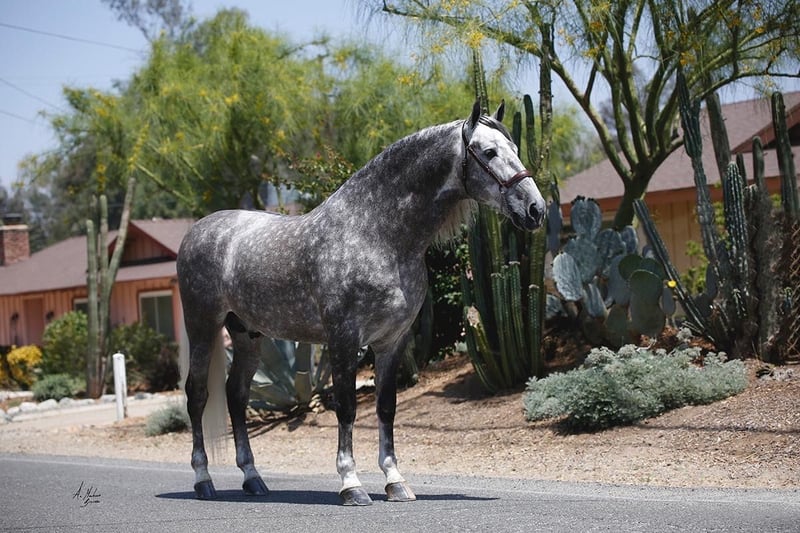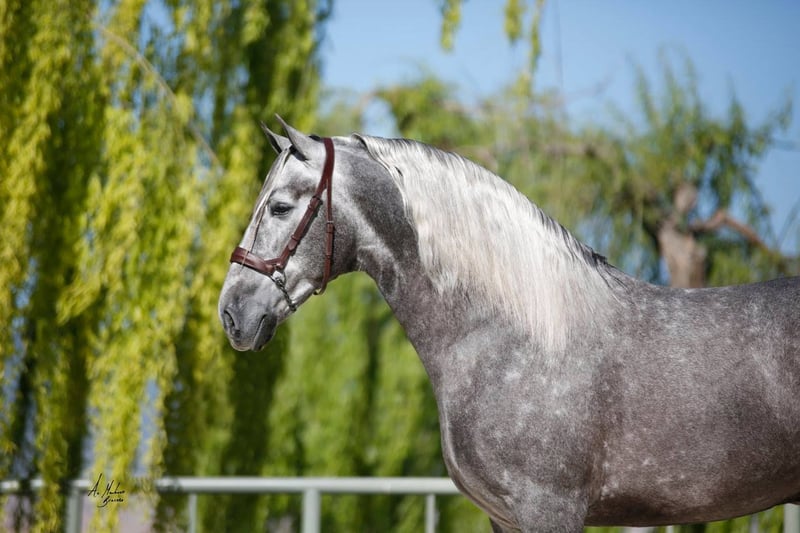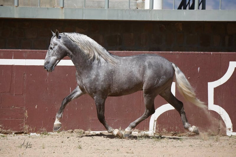 ARMAS INERVO embodies the pinnacle of excellence from the renowned breeder FLORENCIO MORENO MORENO. This majestic international champion stallion is linebred from the legendary Yeguada PLAZA De ARMAS, a cornerstone of elite Spanish dressage bloodlines. He also carries the prestigious lineage of Judio VII (Yeguada Villaire). With a breathtaking genetic index score of 114.91, INERVO stands as a paragon of the Pura Raza Española (PRE) breed, radiating power, elegance, and unparalleled presence. A decorated ANCCE champion in Spain - as Campeon Mundial, SICAB 2015, a champion of France and the United States, INERVO has dominated the show ring with limited yet illustrious appearances, securing his status among the breed’s finest. This awe-inspiring stallion is poised to elevate any breeding program or continue his ascent in the competitive arena. INERVO is your opportunity to own a living legacy, destined to leave an indelible mark on the world of PRE horses. Contact us to secure this extraordinary champion and create a breeding dynasty.