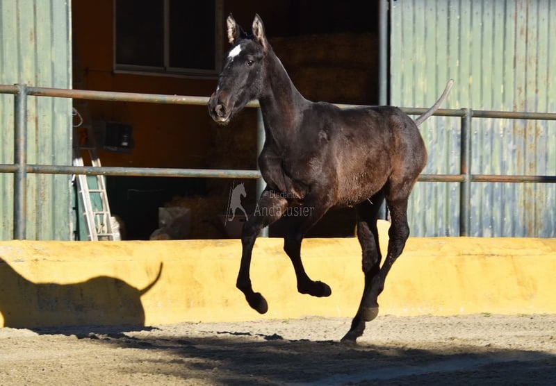 lieber Charakter, roh, steht mit anderen Fohlen draußen, groß, gute Abstammung, Abstammung: Pepe Werner, los Retamales, Millan Herce, Granda Losada, er hat mehrere qualifizierte Vorfahren www.elegante-andalusier.com