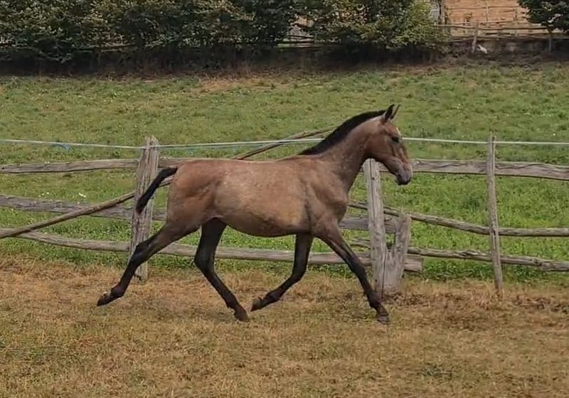Pouliche de 6 mois Fille de Salsita Maynou, jument qualifiée et recommandée par l'ANCCE, et de Sn Águila, poulain de la stud farm Torreluna. Tout issu des élevages de Marin García. Pouliche avec une prestance de très haute qualité, Et une morphologie particulièrement remarquable.