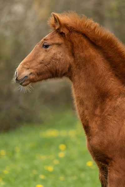Zum Verkauf steht ein vielversprechendes PRE-Hengstfohlen (Fuchs, Träger des Pearl-Gens – prl). Geboren im November 2025 aus der bewährten Anpaarung Serpiente x Atrevido VLR II. Das Fohlen wird voraussichtlich ein Endmaß von ca. 1,60–1,65 m erreichen und zeigt bereits jetzt einen barocken, kräftigen Körperbau mit guter Substanz. Charakterlich präsentiert er sich aktuell noch etwas vorsichtig und zurückhaltend, dabei jedoch stets respektvoll im Umgang mit dem Menschen, aufmerksam und neugierig. Er nimmt neue Reize gut an und zeigt sich in der Herde unkompliziert, rangniedrig und sozial verträglich. Zwei Vollschwestern können vor Ort besichtigt werden und geben einen sehr guten Eindruck über die weitere Entwicklung dieser Linie. Ein interessantes Fohlen für Liebhaber barocker PRE-Typen mit besonderer Farbgenetik sowie für Zucht und Sport. Weitere Informationen gerne auf Anfrage. PRE Gestüt MJ Magic Joy