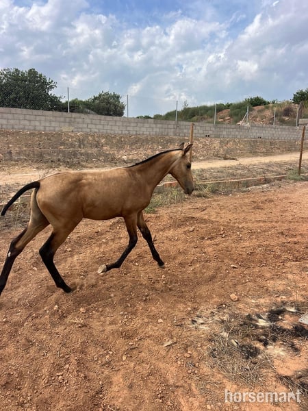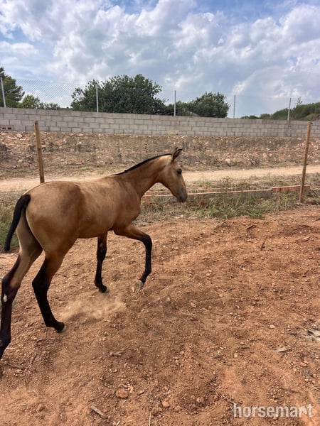 Medirá aproximadamente 16/16.1 hh. Se mueve con gracia, de manera recta y correcta. Será un caballo de doma excepcional en formación. También podría usarse como semental, ya que posee el gen de color para producir crías hermosas cuando sea mayor. Ambos padres tienen temperamentos increíbles y siempre transmiten potros hermosos. Se requiere un depósito para reservarlo hasta el destete. Todo está a la vista si puedes viajar hasta la cuadra. Ubicado en Valencia, España. Envío a nivel mundial disponible; por favor, contáctanos para una cotización. Precio: 7.509 euros o aproximadamente 6.500 libras esterlinas en el día de la venta.