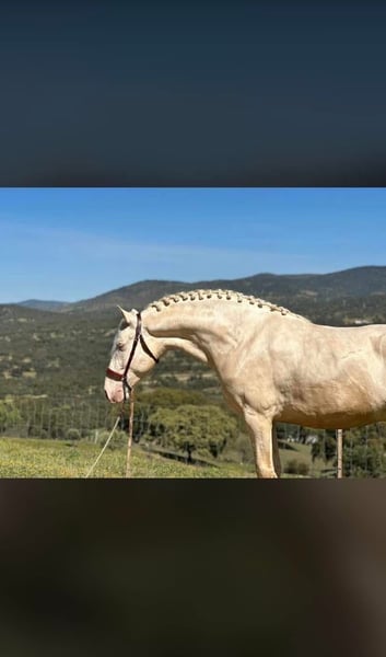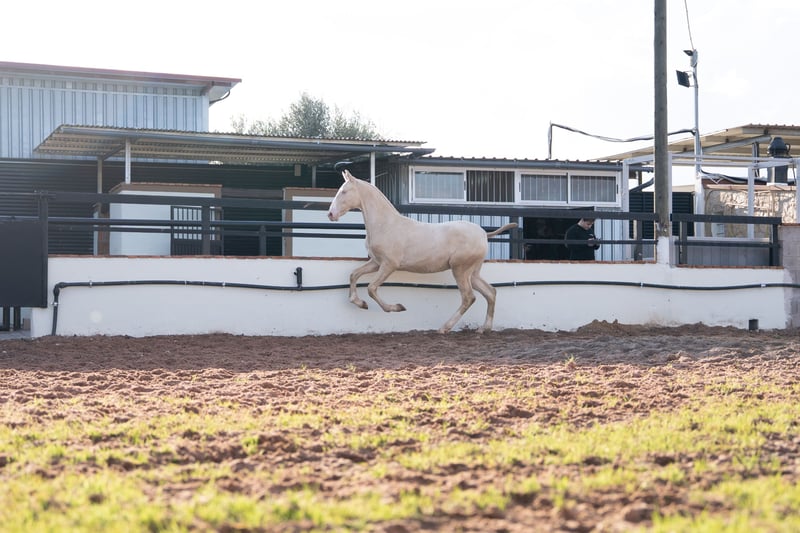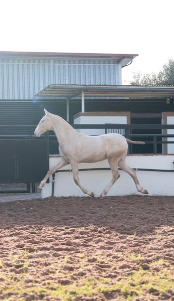 Große Gelegenheit, einen zukünftigen Spitzenhengst im P.R.E.-Typ zu erwerben: perlino, Careto und Cuatralbo – die exklusivsten Farbvarianten im Dilutionsbereich. Der Fohlen ist gerade 9 Monate alt, besitzt eine sehr gute Konstitution, ist kräftig und breit gebaut, mit guten Linien und korrektem Fundament. Seine Bewegungen sind äußerst ausdrucksstark und artistisch, was auf eine vielversprechende Zukunft in der hohen Schule und bei Shows hindeutet. Ebenso eignet er sich für die Arbeitssportart, als Zuchthengst oder zur Zucht, um eine eigene Herde aufzubauen. Er ist Nachkomme von Inedit II, einem cremello Hengst mit 1,73 m Stockmaß. Der Hengst steht in Castellón, nahe Valencia, Spanien.