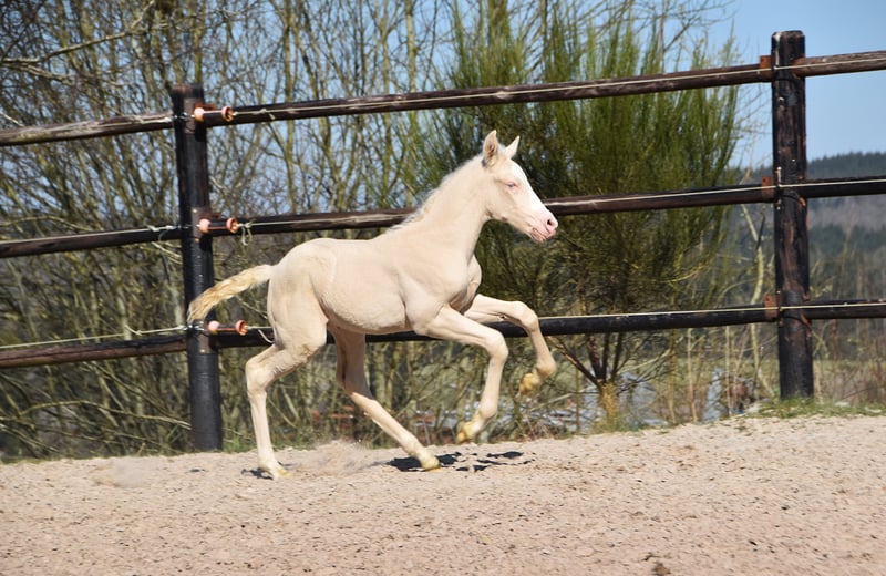 Atento ist ein atemberaubender cremello PRE-Hengstfohlen mit seltener Färbung, korrekter Konformation und hervorragenden Blutlinien, was ihn zu einem wertvollen Kandidaten sowohl für den Sport als auch für die Zucht macht. Seine Mutter, Atenta VLR, ist eine bewährte Zuchtstute und Turnierpferd. Sie hat zweimal in Belgien an morphologischen Wettbewerben teilgenommen und dabei zwei Silbermedaillen gewonnen, was ihre Qualität und den Rassetyp unterstreicht. Sein Vater, Efusivo A, bringt eine kraftvolle genetische Grundlage mit. Er ist der Enkel zweier Calificado-Pferde, der legendären Corinta und Romero XVIII. Efusivo ist bekannt dafür, Fohlen mit ausdrucksvoller Bewegung, exzellenter Struktur und edlem Temperament zu züchten. Die seltene cremello Farbe von Atento macht ihn zu einem attraktiven Kandidaten für Züchter, die verdünnte Gene in ein PRE-Zuchtprogramm einführen möchten, ohne dabei Qualität oder Typ zu opfern. Wir hätten ihn gerne behalten, haben uns jedoch entschieden, seine Halbschwestern sowohl von der Seite seines Vaters als auch seiner Mutter zu behalten, weshalb Atento für das richtige Zuhause verfügbar ist. Er wird regelmäßig gehandhabt, sozialisiert und entwickelt eine ruhige, intelligente und neugierige Natur. Eine einzigartige Gelegenheit, ein Fohlen zu besitzen, das Farbe, Qualität und bewährte Abstammung kombiniert. Atento ist vollständig ANCCE-registriert, hat seine Carta und genetische Tests in ANCCE durchgeführt.