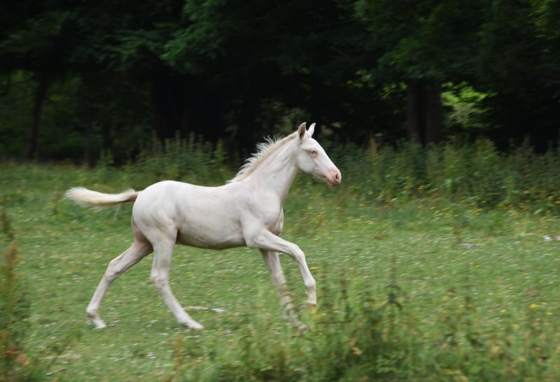 Atento is a stunning cremello PRE colt with rare coloring, correct conformation, and excellent bloodlines, making him a valuable candidate for both sport and breeding. His dam, Atenta VLR, is a proven broodmare and show horse. She has competed twice in Belgium at morphologic competitions, earning two silver medals, a testament to her quality and breed type. His sire, Efusivo A, brings a powerful genetic foundation. He is the grandson of two Calificado horses, the legendary Corinta and Romero XVIII. Efusivo is known for producing foals with expressive movement, excellent structure, and noble temperament. The rare cremello color of Atento makes him an attractive prospect for breeders looking to introduce dilute genetics into a PRE breeding program without sacrificing quality or type. We would have loved to keep him, but have chosen instead to retain his half-sisters on both his sire and dam's side, making Atento available to the right home. He is handled regularly, socialized, and developing a calm, intelligent, and curious nature. A unique opportunity to own a colt who combines color, quality, and proven lineage. Atento is fully ANCCE registered, has his carta and genetic testing done in ANCCE