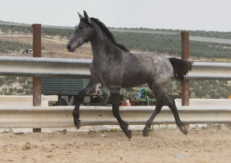 Carácter noble, algo rudo, convivendo con otros potros jóvenes al aire libre. Buena ascendencia, proveniente de Guardiola, Yeguada Rosa, Granda Losada. El abuelo Destacado Sal y el bisabuelo Barquito están calificados. www.elegante-andalusier.com