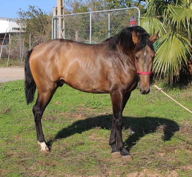 Nativo, geboren 05.04.23, ist der typische PRE, barock, kurz, kraftvoll und dann noch in Sonderfarbe. Er kennt Longe und Sattel, mehr im Moment noch nicht. Nativo ist klar im Kopf, nicht hengstig, manchmal ein richtiger Clown und sehr verspielt. Er hat sich als Fohlen eine Verletzung zugezogen, die aber längst verheilt ist, die Narbe ist rein ästhetisch (siehe letztes Foto). Auf Wunsch kann Nativo zur weiteren Ausbildung bei uns im Beritt bleiben. Eine AKU kann in Auftrag gegeben werden. Der Transport wird international organisiert. Videos auf Anfrage