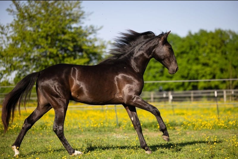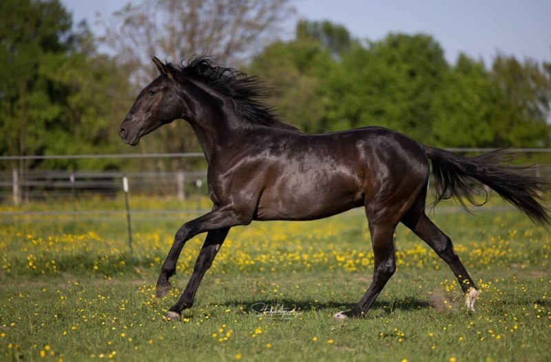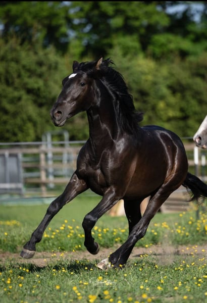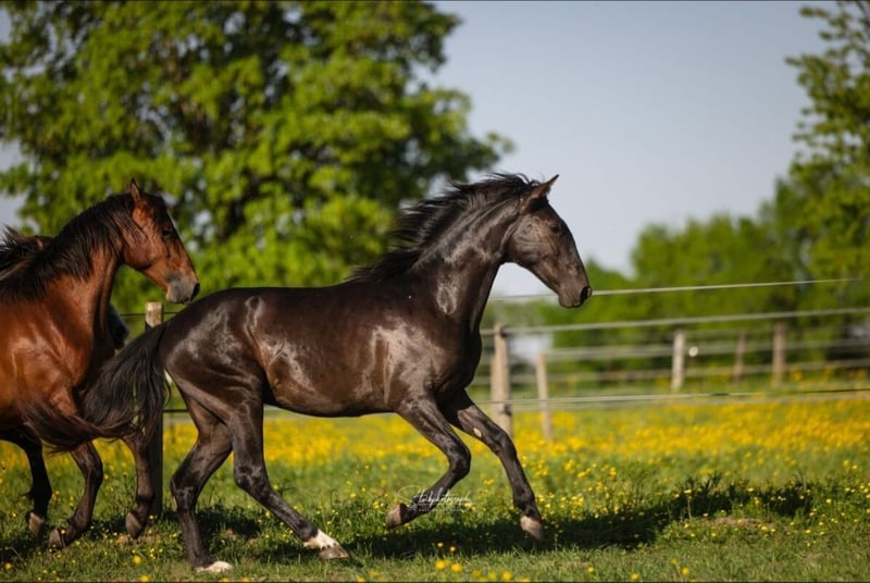 Torbellino VD - unser 2-jähriger PRE Hengst in der seltenen Farbe "Smoky Black" aus der weltbekannten Fer Bago Linie ( 2 x Worldchampion ) zu verkaufen. Torbellino steht mit 2 weiteren Junghengsten auf der Weide mit Offenstall und konnte sich bisher sehr gut entwickeln. Mit seiner exzellenten Abstammung und seinem freundlichen Charakter bietet Torbellino eine vielversprechende Zukunftsperspektive sowohl im Sport, durch sein Creme Gen in der Zucht oder als wunderbarer Freizeitpartner. Er bewegt sich sehr elegant und gechickt. Besonders sein Schritt ist hervor zu heben. Sein Galopp ist schon jetzt sehr gesetzt und kadenziert. Wer sich die Bilder seiner Familie ansieht, wird schnell erkennen, dass er in naher Zukunft ein wahrer Hingucker wird. Für weitere Informationen bitte gerne melden unter 0174.2030149.