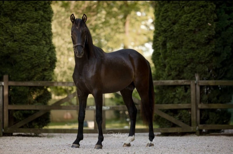 Torbellino VD - nasz 2-letni ogier PRE w rzadkim kolorze "Smoky Black" z światowej sławy linii Fer Bago (2 x Mistrz Świata) szuka swojego partnera na całe życie! Torbellino może pozostać u nas na dalszą hodowlę! Ze swoim przyjaznym, czułym i ufanym usposobieniem czaruje Torbellino każdego, kto go spotka. Czy to podczas przytulania, czy czyszczenia - uwielbia być rozpieszczany i cieszy się każdą uwagą. Torbellino uwielbia długie spacery, jest przyzwyczajony do załadunku i bez problemu akceptuje kowala. Jego spokojny i przyjazny charakter sprawia, że jest łatwym i przyjemnym partnerem. Dokumenty Torbellino są obecnie przygotowywane w hiszpańskim związku hodowlanym ANCCE. Dzięki swojej doskonałej genealogii i przyjaznemu charakterowi, Torbellino oferuje obiecującą perspektywę zarówno w sporcie, dzięki swojemu genowi kremowemu w hodowli, jak i jako wspaniały partner do rekreacji. Kto zobaczy zdjęcia jego rodziny, szybko dostrzeże, że w niedalekiej przyszłości stanie się prawdziwą ozdobą. W celu uzyskania dalszych informacji i umówienia się na wizytę, jesteśmy do Państwa dyspozycji!