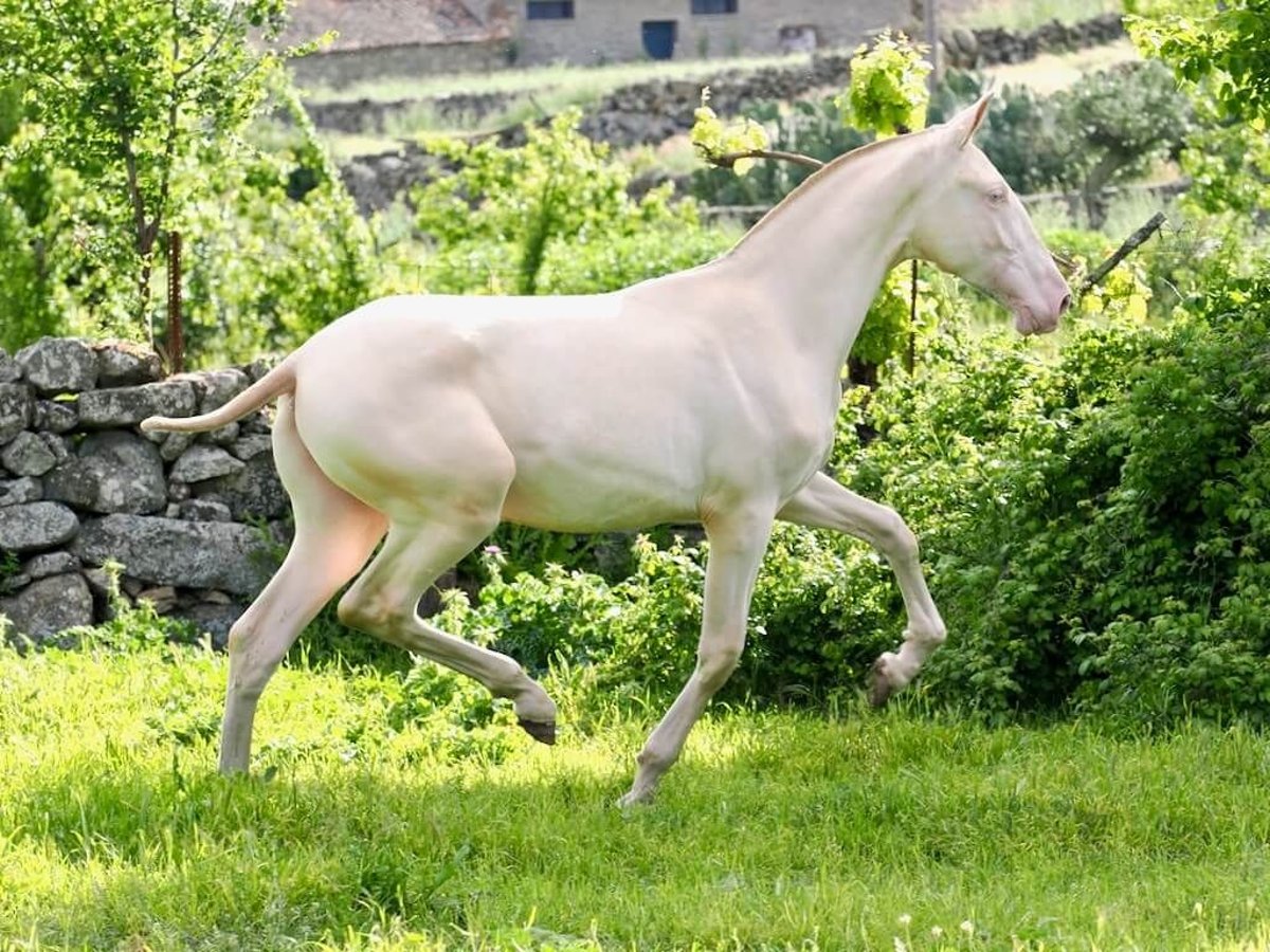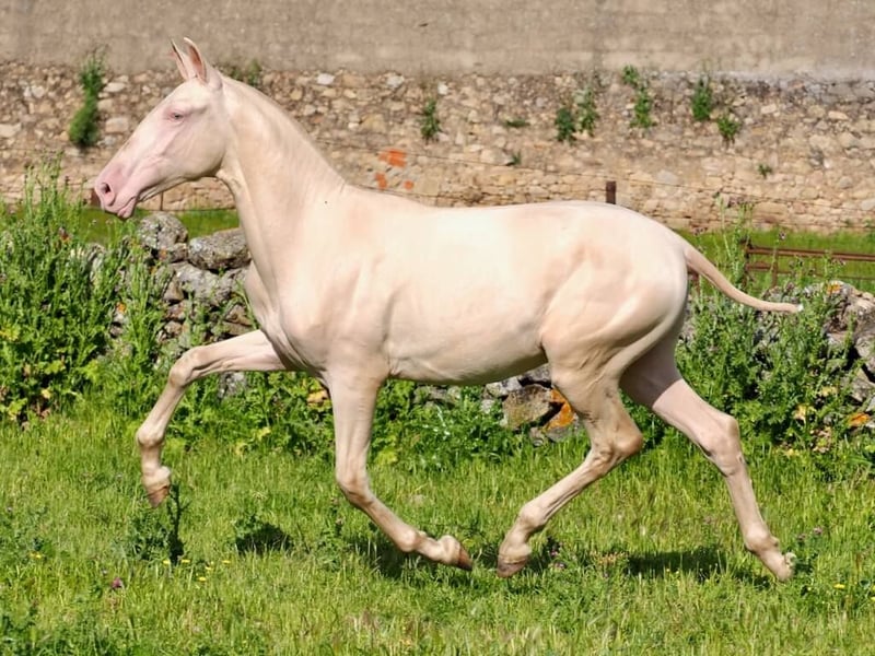 Nous vous présentons un exceptionnel poulain perlino, Pure Race Espagnole, né en 2024 et mesurant actuellement 157 cm. Cet jeune spécimen est le fils de Bronco XLV, un étalon de référence pour sa puissance, sa morphologie raciale et son caractère équilibré, et de Topolina GSA, jument de grande noblesse et de qualité dans ses mouvements, ce qui lui confère une lignée génétique solide, fonctionnelle et avec beaucoup de potentiel pour des disciplines telles que le dressage classique ou la reproduction sélective. Avec une expression vive, des mouvements libres et amples, et un caractère curieux et sociable depuis son jeune âge, ce poulain représente une opportunité unique pour ceux qui recherchent un PRE exclusif, d'une grande beauté, avec des lignes contrastées et une génétique spéciale. Excellente opportunité pour un futur éleveur cherchant à améliorer ses lignées, ce poulain est disponible pour les cavaliers ou éleveurs les plus exigeants.