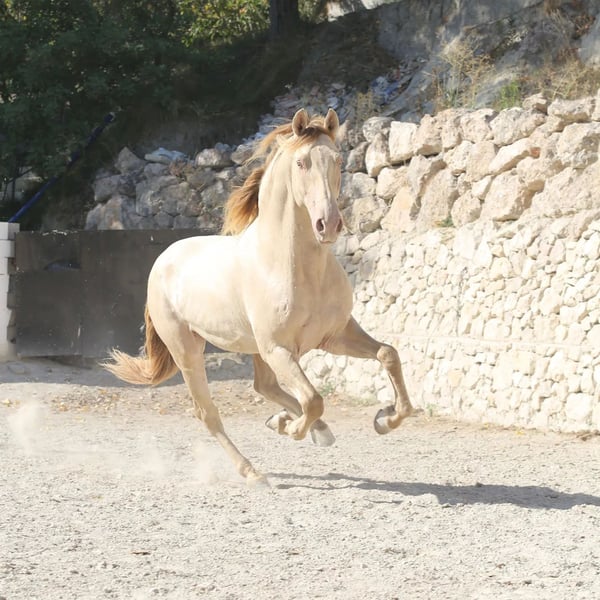 Ha un carattere molto nobile e un movimento eccellente. È molto equilibrato e intelligente. Misura 1,58 m a 22 mesi. Figlio di Ideus A de Narbon.