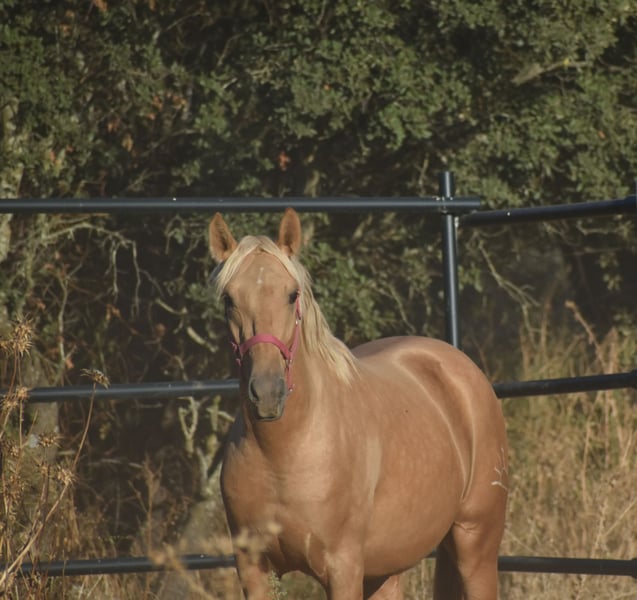 Opportunité d’acquérir un magnifique étalon ! Vends un superbe étalon PRE né en 2023, de couleur palomino et mesurant 1,62 m. Idéal pour l’équitation de travail, ce cheval allie force, endurance et beauté. Parfait pour ceux qui recherchent un cheval polyvalent et de qualité pour le travail ou l’entraînement. Notre Palomino possède un caractère merveilleux et est très facile à manier. Il sait donner ses quatre pattes et faire des tours en longe. Il se comporte toujours très bien. De plus, ses radiographies sont propres. N’hésitez pas à nous contacter pour plus d’informations ou pour organiser une visite. Une excellente opportunité pour les passionnés d’équitation et d’élevage équin ! www.iberianpremiumhorses.com