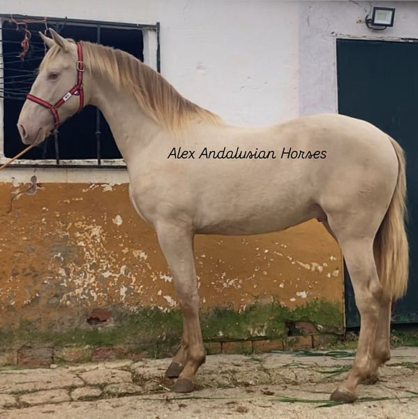 Beautiful stallion Spanish Horse with passport ( not full papers PRE), he is from 05/2024. his size is 1.63cm. He have nice color perlino ! Videos available ! If you like this horse and need more info please contac/us : (+34)657314412. We organize vetcheck, transport, documents etc.. Follow/us on our social network!