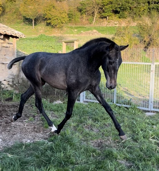 Se vende precioso potro entero PRE de Yeguada la Montaraza con carta (foto adjunta) Nacido a finales de abril de 2023. Tordo. Está entero. Hijo de Átomo de Centurión (últimas fotos). Muy manso, noble y cariñoso. Doma de cuadra y empezando a trabajar a la cuerda. Sabe subir y bajar del Van. Excelentes movimientos. Alrededor de 1,63-1,64 y creciendo. Consulte sin compromiso.