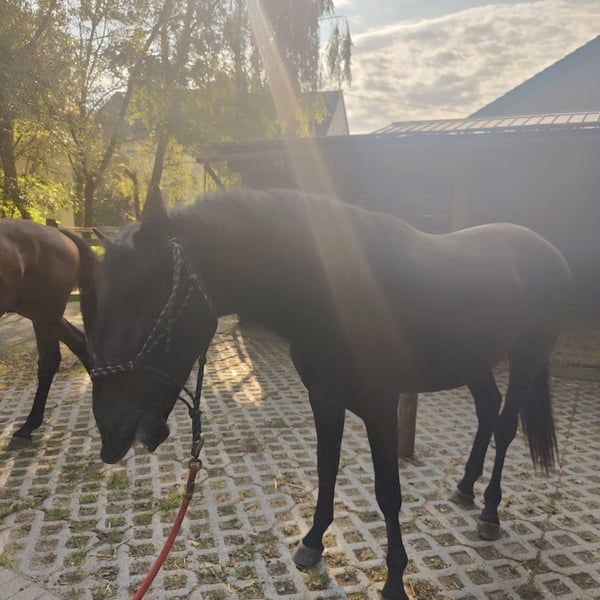 Der Junge Mann besticht durch überragende GGA und ein Herz aus Gold. Unglaublich lieb und doch schon beeindruckend in seiner Erscheinung, zieht er alle Blicke auf sich wenn man mit ihm unterwegs ist! Hänger, Schmied, TA , über die Straße gehen oder alleine in der Box bleiben, alles kein Problem für unseren Herzensbrecher. Er wird ca. 165 -170 cm groß werden. Selbstverständlich hat er volle Papiere! Er ist ein kleiner Pechvogel der sich zweimal verletzt hat und wird daher weit unter Wert abgegeben. Er hat sich zweimal verletzt, einmal durch Verschulden von Menschenhand und einmal weiß ich nicht was passiert ist. Er war selbstverständlich in der Klinik und wurde medizinisch betreut. Prognose: voraussichtlich Reitbar, schlechtestes für die Freizeit, bestenfalls für den Sport. Da ein Restrisiko bleibt suchen wir einen Menschen der im Zweifel auch einfach Spaß hat ein wunderschönes Pferd vom Boden aus zu arbeiten, denn gearbeitet werden muss er. Diagnose: Chips und Hüfthöcker Bruch ( kommt öfter vor als man denkt und ist oft ein Zufallsbefund). Der junge Mann wird sicher zwischen 165 und 170 cm groß werden. Sehr gute GGA und gute Chancen auf die Körung, durchaus für die Zucht interessant. Abgabe nur in nachweislich gute Hände, wir haben ein sehr gutes Netzwerk und wir werden nicht an Händler oder Ähnliche verkaufen. Das werden wir genau prüfen! Standort zur Zeit nähe Nürburgring, hier genießt er momentan mit anderen jungen Wilden die Freiheit.... Dies ist kein Notverkauf, es wird der richtige Mensch gesucht.... Wir wünschen uns ein Zuhause in dem er gefördert wird und dennoch Pferdegerecht gehalten wird. Er sollte für uns in den Deckeinsatz gehen. Gerster war jedoch unsere behandelte Physiotherapeutin vor Ort und hat geraten ihn zügig in die Arbeit zu nehmen um ihn in der Hinterhand zu stabilisieren. leider ist dies hier im Moment nicht möglich. Selbstverständlich kann ein TA des Vertrauens hinzugezogen werden. Wir können hier natürliche keine Garantien für etwas geben, daher ist der Preis auch im Bereich Beisteller. Wir verkaufen nur mit Vorkaufsrecht. Händler bitten wir von Anfragen abzusehen. Für Fragen gerne melden , weitere Videos aktuell nach Kontakt