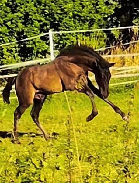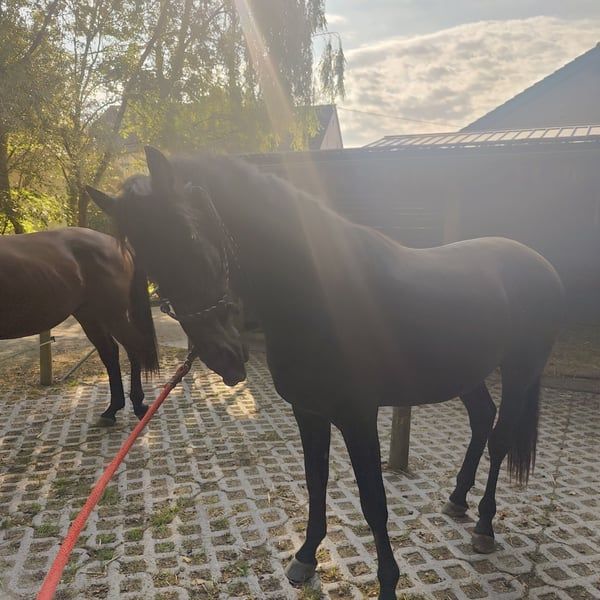 The young man captivates with outstanding gaits and a heart of gold. Incredibly sweet and yet already impressive in his appearance, he draws all eyes when out and about! Loading, farrier, vet, crossing the street, or staying alone in the box, everything is no problem for our heartbreaker. He is expected to grow to about 165 - 170 cm tall. Of course, he has full papers! He is a bit of an unfortunate soul who has been injured twice and will therefore be sold well below value. He has been injured twice, once due to human error and once I do not know what happened. He has, of course, been in the clinic and received medical care. Prognosis: likely rideable, worst-case scenario for leisure, best-case scenario for sport. Since there is a residual risk, we are looking for someone who is also simply interested in having fun working with a beautiful horse from the ground, as he needs to be worked. Diagnosis: chips and hip socket fracture (which occurs more often than one might think and is often an incidental finding). The young man is sure to grow between 165 and 170 cm tall. Very good gaits and good chances for approval, certainly interesting for breeding. Sale only to proven good hands; we have a very good network and we will not sell to dealers or similar. We will check this thoroughly! Currently located near the Nürburgring, he is currently enjoying freedom with other young wild ones... This is not an urgent sale; we are looking for the right person... We wish for a home where he will be supported and still kept in a horse-appropriate manner. He should go into breeding for us. However, our treating physiotherapist on-site advised to start working with him quickly to stabilize him in the hindquarters. Unfortunately, this is not possible at the moment. Of course, a trusted vet can be consulted. We cannot provide any guarantees for anything here, which is why the price is also in the range of a companion horse. We only sell with a right of first refusal. We kindly ask dealers to refrain from inquiries. For more information, please contact me by phone. 01638904433