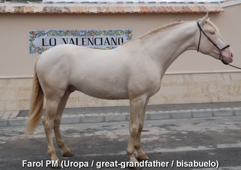 Carácter tranquilo y apacible, curioso y muy sociable con las personas. Es rústico, de tamaño grande, con un aspecto barroco y movimientos elegantes. Tiene un color especial, Bayo Perla, con papeles de PRE. Cuenta con buenas radiografías. Su linaje incluye a Paco Marti, Escalera, Antares y La Aldara. www.elegante-andalusier.com