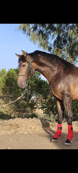 For sale: a magnificent 17-month-old bay PRE colt standing at 16.9 hh. He is sired by Monitor de la Espada and is truly one of a kind, exhibiting spectacular movement and excellent conformation. Suitable for any discipline. For more information, please contact privately.
