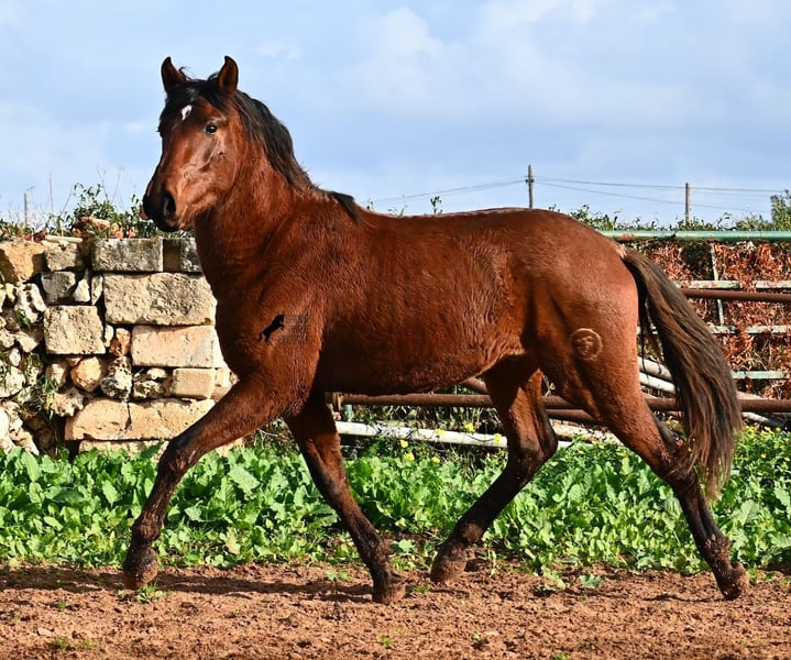 Dieser 2023 geborene PRE Hengst (Andalusier mit Rassenachweis der Ancce), ist ein richtiges Rohjuwel. Der Züchter legt großen Wert darauf, dass die Hengste bis mindestens 3 Jahre in der Hengstherde aufwachsen. So kommt es, dass er bei der Regensaison auf Menorca plüschiges Fell und etwas Panier im Fell hat, aber nur ein Indiz auf das natürliche Aufwachsen ;) Der Youngster ist sehr neugierig und aufgeschlossen und hat keinerlei Hengstmanieren, wobei er noch komplett roh ist. Freunde des klassischen PRE, werden beim Anblick auf seine Abstammung die Augen vor Freude leuchten! Denn er ist ein Sohn des Yeguada Militar (CARTUJANO) Hengstes UCLES II und väterlicherseits komplett Yeguada Militar gezogen! Mütterlicherseits kann sich auch sehen lassen, denn nicht nur hat er Escalerablut, sondern ist sogar ein Abkömmling des ELITEhengstes EDUCADO X von Guardiola! Daher kommt auch seine gute Bewegung und das barocke, nicht zu riesige Exterieur. Aktuell liegt er bei 154cm Stockmaß und wird auch noch einige Zentimeter wachsen, dennoch bestimmt im klassischen Typ des PRE bleiben und kein "Riese" werden. Er ist ein klassicher Brauner mit schwarzen Socken und schwarzer Mähne, aufgelockert durch einen kleinen Stern. Es besteht die Möglichkeit, dass er vor Ort noch antrainiert wird und aufs Reitpferdeleben vorbereitet wird. Für all jene die keinen Hengst halten können, besteht natürlich auch die Option der Kastration vor Ort. Sein Standort ist Menorca. Videos und Abstammung gerne auf Anfrage. Gerne organisiere ich vor Ort eine AKU, Beritt, Kastration, Transport oder auch ihre Reise, sollten Sie persönlich zum Anschauen kommen. Details dazu gerne auf meiner Seite oder im Gespräch. Saludos aus Spanien