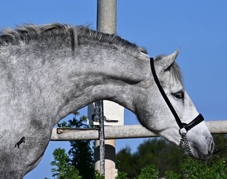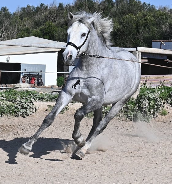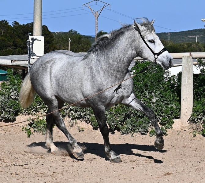 This PRE stallion (Andalusian with ANCCE breed certificate), born in 2023, is a very well-behaved sweetheart! He lived in the herd until December 2024 and is now stabled for a short time to give him a stable basic education before he goes back into the herd - or even better, to you :) He takes the hustle and bustle on the farm in his stride, whether it's dogs, children, tractors or a horse dashing around freely, because just when we wanted to move him, a horse colleague got out and kept the farm on its toes ;) He knows how to be lunged on a halter and can be handled everywhere. He has already been loaded as a weanling and transported to his current stable, so he is no stranger to driving a trailer. At currently 154cm, he will not be too tall, but he will certainly have a nice baroque look, as he already has the baroque exterior for a youngster. He is currently in Menorca! Videos and pedigree available on request. I would be happy to organize an AKU, castration, transport or even your trip if you come to see him in person. Details can be found on my website or in conversation. Saludos from Spain
