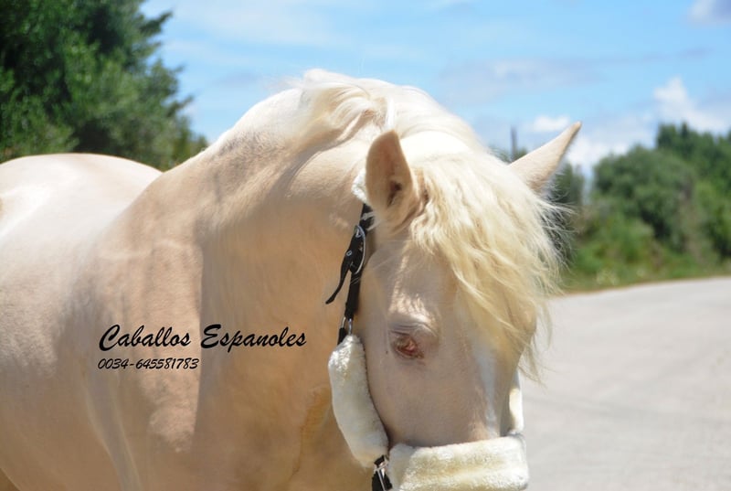 Ein ausgesprochen schöner PRE Hengst in besonderer Farbe - Palomino Perla. Der junge Mann ist korrekt gebaut, mit einem ausdrucksstarken Köpfchen. Der Hengst ist im Umgang brav und immer neugierig interessiert. Beim Anreiten war er super unkompliziert und war auch schon im Gelände. Ein tolles Pferd, für Jemanden der etwas Besonderes sucht. Abstammung: Paco Marí, Badal Das Pferd wird im Auftrag verkauft. Er kann gerne bei uns noch in Beritt bleiben. Eine AKU wird kurzfristig organisiert. Internationaler Transport.