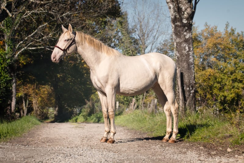 We present to you this young perlino stallion, a future breeding stallion with exceptional qualities. His rare and precious coat, carrying cream genes, guarantees the transmission of diluted colors (isabella, palomino, perlino, cremello, etc.) to his future offspring, a true treasure to enrich your breeding program. Highlights of Orgulloso: ⚜️ Unique genetics: Thanks to his perlino coat, this young horse is an ideal choice to bring color and originality to your foals. ⚜️ Exemplary character: Calm, curious, and easy to handle, he shows a reliable and balanced temperament, qualities he can pass on to his descendants. ⚜️ Prestigious origins: Coming from lines recognized for their beauty and performance, he has everything to become a sought-after and high-performing breeder. This young horse is a rare opportunity for breeders looking to add real value to their program: elegance, diversity of coats, and an exceptional mindset. Make a future-oriented choice for your breeding! For more information or to arrange a visit, please do not hesitate to contact us. --- ALEGRIA – Find the horse of your dreams and create a unique relationship based on trust and complicity. At Alegria, we know that buying a horse is much more than just a transaction. It’s about finding a life partner with whom you will build a solid and fulfilling relationship. We offer expert support at every step, so you can make an informed choice and start this adventure with peace of mind. Why choose Alegria? Personalized support to guide you in your choice. We help you find the horse that matches your personality, expectations, and skills, so that the relationship you build with him is smooth and natural. ✨ Our team of experts advises, guides, and supports you in your process so that you make an informed choice without rushing. Horses raised in an environment conducive to their well-being. Our horses are raised in exceptional conditions, where they benefit from gentle and respectful education, based on our exclusive method "Relationship of Complicity." Each horse is prepared to be a reliable, responsive, and balanced partner, ready to build a trusting relationship with you. Quality care to ensure optimal health. The well-being of our horses is paramount. They are regularly monitored by animal health experts: veterinarians, osteopaths, farriers, and dentists. This medical follow-up ensures that your horse will be in great shape, ready to start this new relationship with you in the best conditions. Transparent follow-up through progress sheets. Each horse benefits from a detailed progress sheet that allows you to know his exact level, strengths, and character. This transparency gives you all the keys to choose the horse that will meet your expectations and the relationship you wish to build with him. Continuous support for a successful relationship. At Alegria, we believe that a lasting relationship is not improvised. That’s why we stay by your side after the purchase, with personalized follow-up to help you build a true complicity with your horse. Through our in-person and online training, you will learn to better understand your horse and strengthen the foundations of your relationship. Testimonials from satisfied clients. We have supported hundreds of riders in their projects. 100% of our clients are satisfied with the support and the relationship they have been able to build with their horse. Their testimonials are the best proof of the quality of our work and the success of the relationships we foster. Find the horse that meets your expectations. Discover our selection of exceptional horses now and start imagining the relationship you will create with him. Consult the progress sheets and let our team of experts guide you to find the horse that meets your expectations. Discover our selection of horses at www.alegriacomplicite.com and start building the relationship of your dreams. Alegria – Find the horse that suits you and create a relationship based on trust and complicity.