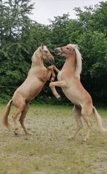 Domingo ist nicht nur ein absoluter Eyecatcher, sondern auch ein totaler Strahlemann, der dazu noch ein richtig gutes Gangwerk mitbringt. Bei ihm passt einfach 100% alles. Er ist neugierig, nervenstark, obwohl Junghengst, absolut brav , sehr sozial, einfach wunderschön, natürlich kerngesund und wohnt im Offenstall. Domingo hat Zuchtpapier von annce. Er ist mütterlicherseits ein Granate Nachfahre. Diese Blutlinie ist für mich ein absoluter Garant für Rittigkeit, Leistung und einem Charakter aus Gold und in Verbindung mit Simpatic V als Vater nur top. Da wir leider nicht alle behalten können, suchen wir für diesen Schatz schweren Herzens auch ein Traumzuhause. Die letzten beiden Bilder zeigen seine Eltern :-)