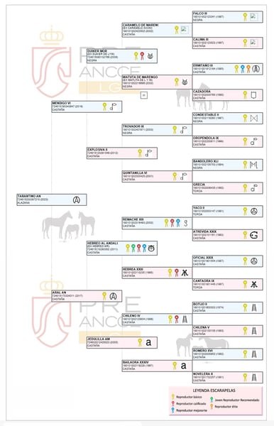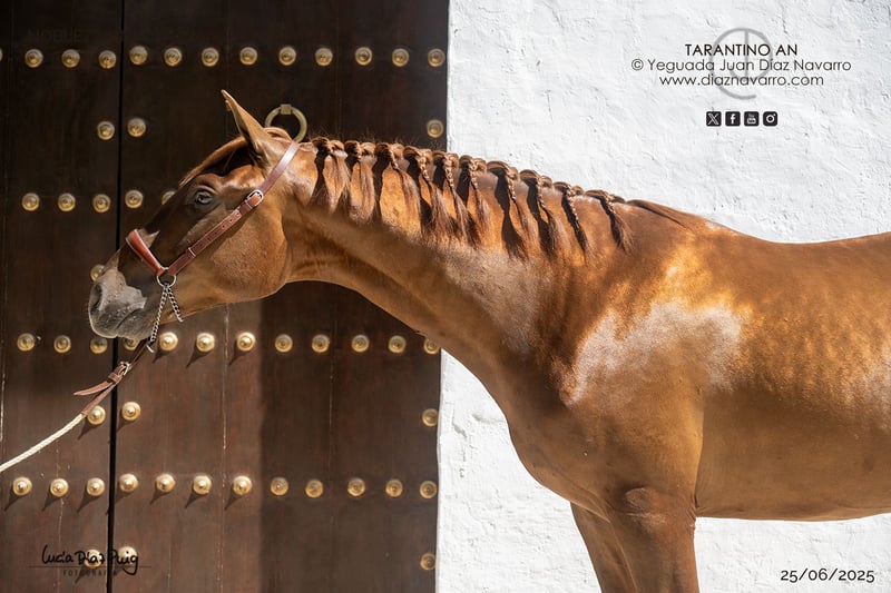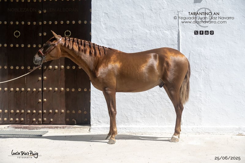 Mogelijkheid om een prachtig veulen aan te schaffen! Te koop aangeboden: een schitterende PRE, volledig ongesteld, geboren in 2023. Met een kastanjebruine vacht, valt zijn schoonheid en elegantie op in elke omgeving. Met een hoogte van 1,60 m is hij goed in balans, ideaal voor fokdoeleinden of voor hoogwaardig paardensport zoals dressuur of werkpaardrijden. Dit paard combineert schoonheid, een zeer goed karakter en potentieel, en vormt een uitstekende investering voor fokkers of liefhebbers van de paardensport. Zijn vader, Mendigo VI del Hierro de Valdeolivas, is een zoon van Duiker Mor en kleinzoon van Trovador IX; zijn moeder is een dochter van Hebreo Al Ándalus. Lijnen: Duiker Mor, Ermitaño III (Elite), Trovador IX, Remache XIII, Yaco II, Chileno IV, Hebreo Al Ándalus. Valdeolivas, Sánchez Barbudo, Granda, Escalera, Marín García, Aquilino Moya, Martínez Boloix. Voor meer informatie en details kunt u gerust contact met ons opnemen.