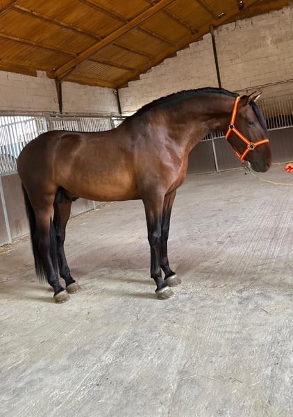 Lovely young PRE Stallion with very gentle manners and ridden so nicely in the smooth way that make a great ride to trust on him. He is working the basic gaits and doing hacking out in the field and roads, very safe to ride.